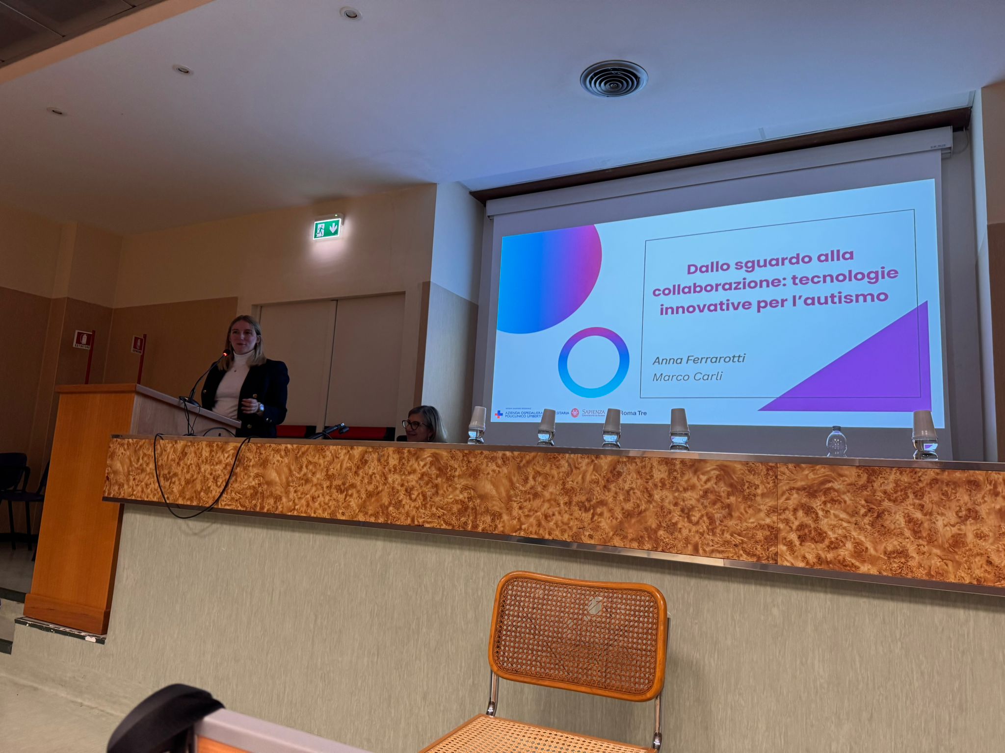 In particolare, la Dott.ssa Ferrarotti ha esposto il lavoro intitolato “Dallo sguardo alla collaborazione: tecnologie innovative per l’autismo”, frutto della cooperazione con i ricercatori della Sapienza.